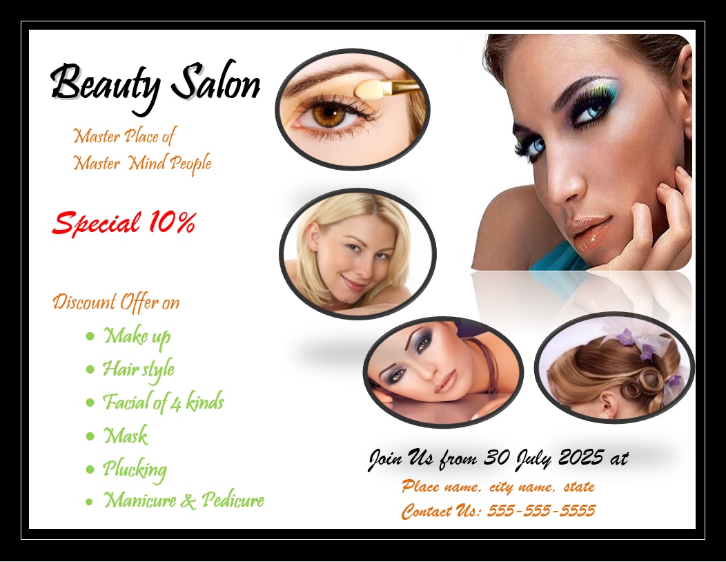 The beauty salon flyer template comes handy while designing your own flyer. This is basically a marketing document that aims to attract people and convince them to visit their salon. Usually, a beauty salon deals with cosmetic treatments for men and women. This business comes under many different names and is often seen as hair salons and fitness spas. Moreover, there are different treatments and beauty solutions which a beauty salon offers to its customers. These solutions or products are bridal makeup, event makeup, hair rebounding and treatments, body massage, facials, manicure and pedicure. Moving further, beauty salons also offer skin care products where special treatments for women’s and men’s skin are offered. The idea behind running this salon is to earn a profit by selling skin and beauty treatments and products. That is the reason why it is a good way of earning. However, for the success of this business, you will need to hire specialists in this field who can perform this job perfectly. It is important to understand that specialization is key to running this business successfully.
