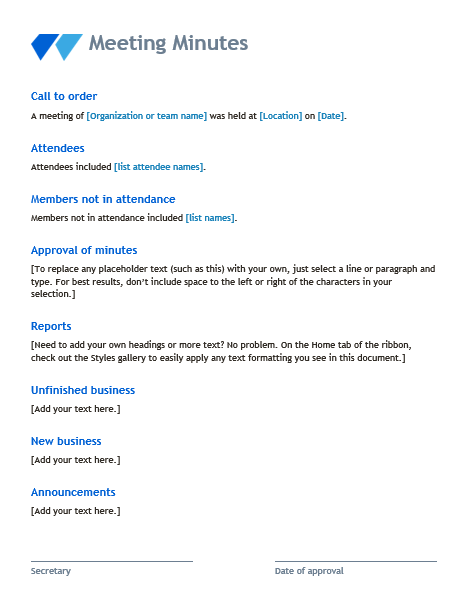 Meeting minutes template is a document which is equipped with all the essential points which are required to mention in the meeting minutes. Meeting minutes are the written documents which includes the information such as the number and name of attendees and non-attendees highlighted points of what has been discussed during a meeting. The main purpose of these documents is to keep the record of meeting for further use, as well as for the members who are not present in the meeting. Moreover, these are kept to keep the record of all the important decisions made during meeting. Some basic important point which should have to be in the minutes is the names of the participants, the agenda items covered, decisions made by the participants, the agenda or meeting topic for the next meeting, due dates for the completion of commitments, and any other events or discussions worth documenting for future review.